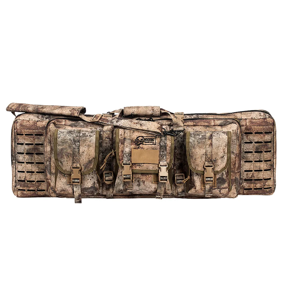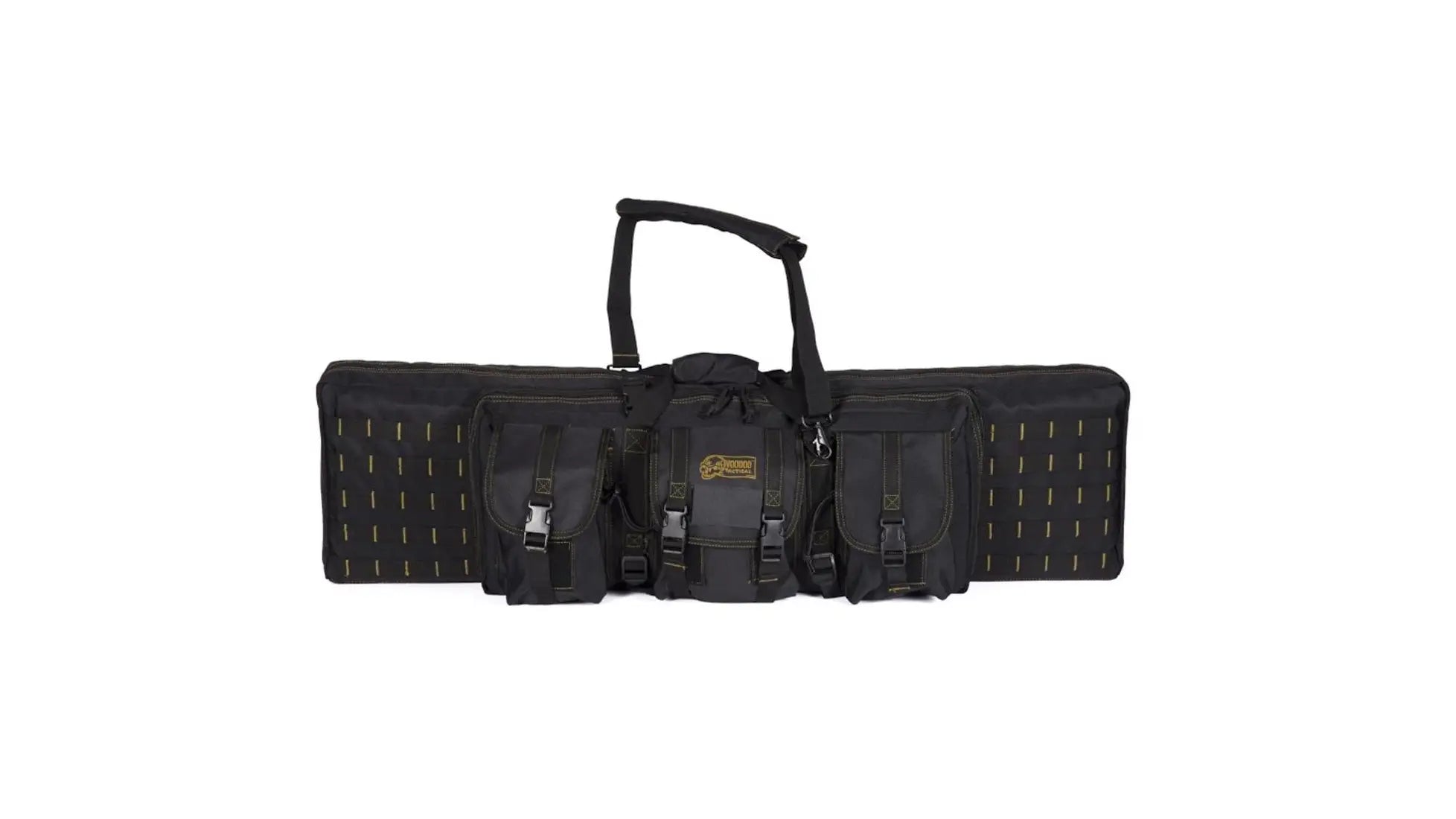 Durable rifle case and tactical range bag for secure firearm transport and storage.