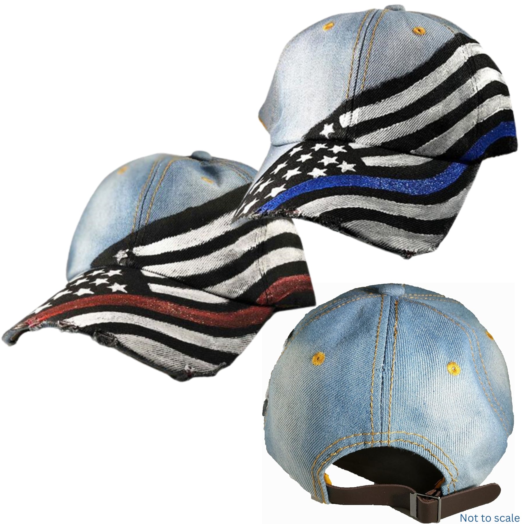 Women's Hand Painted - Thin Blue Line/Thin Red Line Flag Ball Cap - Clothing & Accessories
