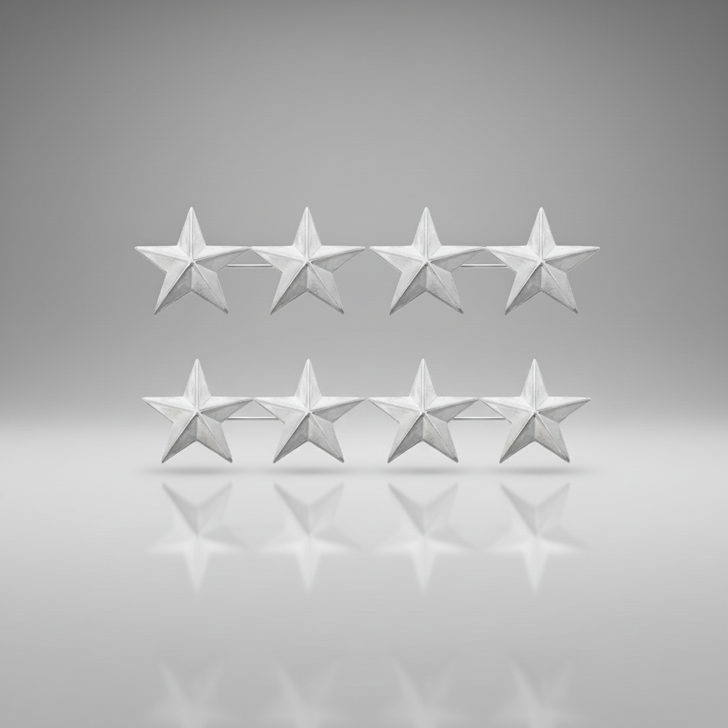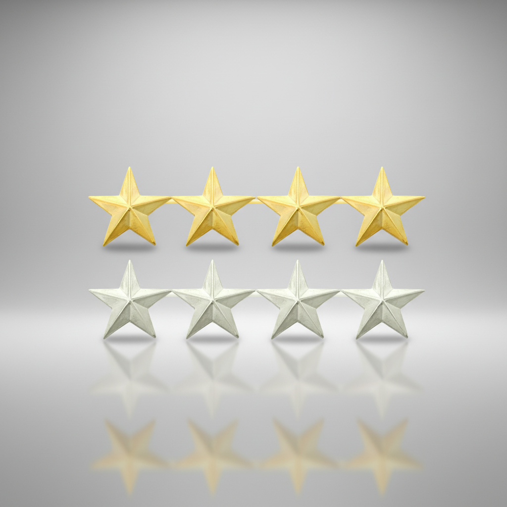 Four Stars Pin 2 1/8" in Gold or Silver for Chiefs, Generals, and Admirals