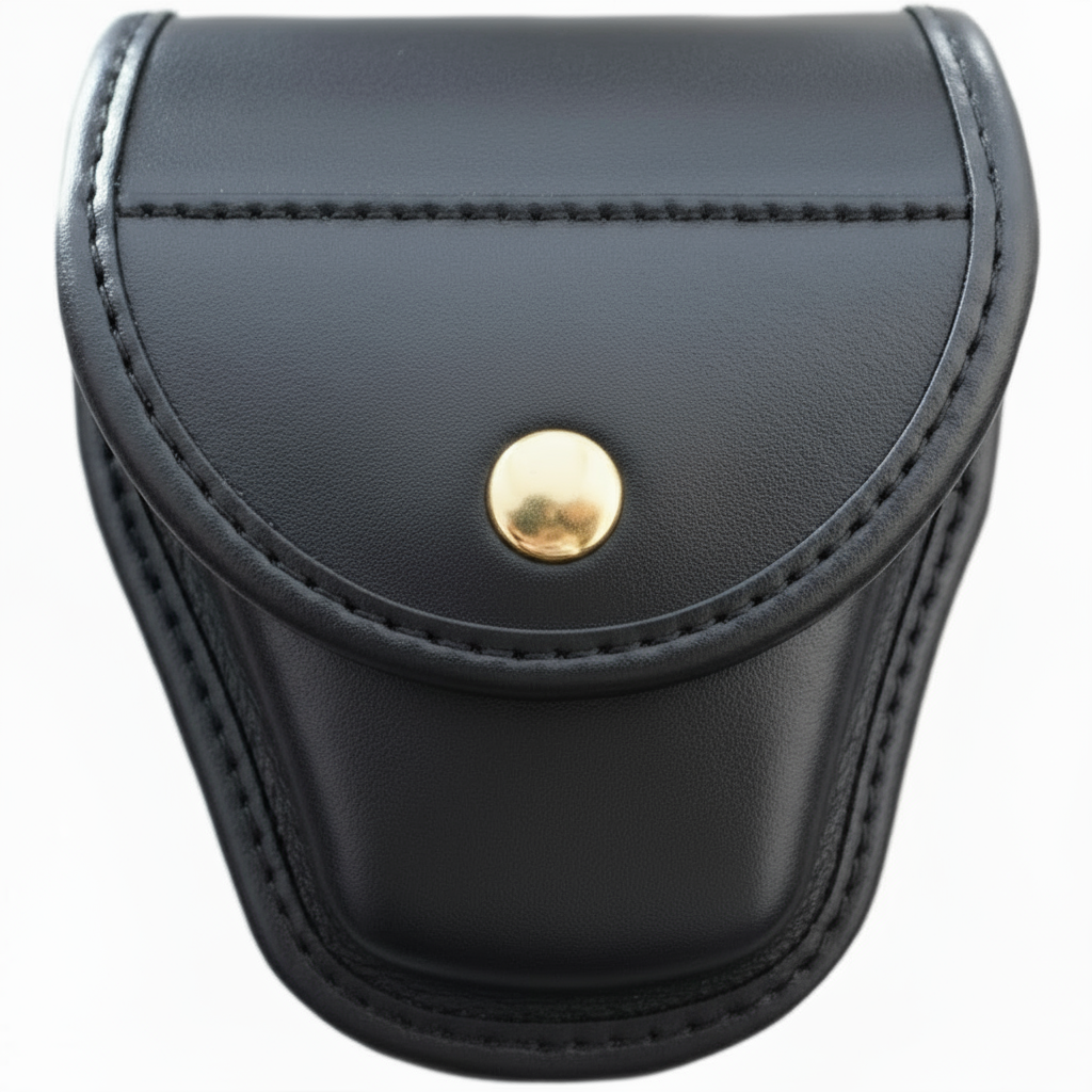 Safariland 190 handcuff case designed for duty belts, featuring durable leather look and snap closure.