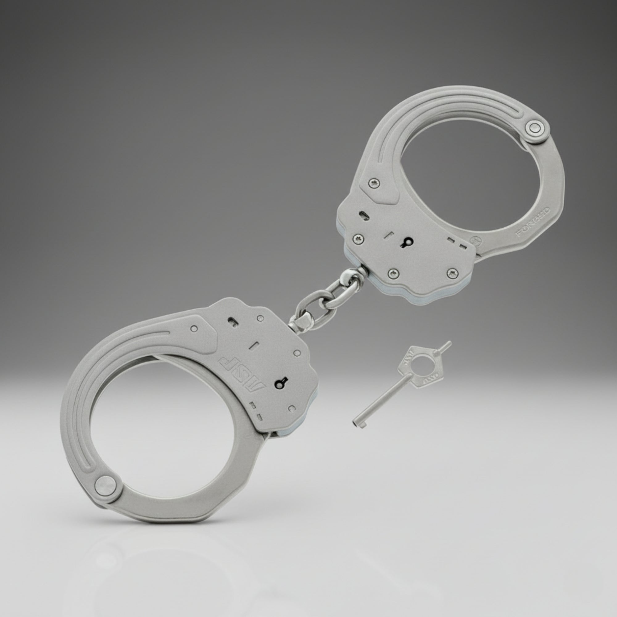 Las esposas Sentry cuentan con marcos rígidos inspirados en vigas en I hechos de acero inoxidable resistente a la corrosión con un hermoso y único acabado granallado. El perfil dimensional de las barras dobles proporciona resistencia sin volumen excesivo. Esto, combinado con un pivote con rodamiento de rodillos de precisión y un arco de acero forjado, produce un balanceo suave y sin problemas. A diferencia de los tradicionales puños de acero estampado, el marco y el arco están fabricados para eliminar bordes afilados y superficies rugosas. Esto reduce el riesgo de que el sujeto se sienta incómodo o lesionado, causas comunes de quejas y reclamos de responsabilidad contra los departamentos de policía.
