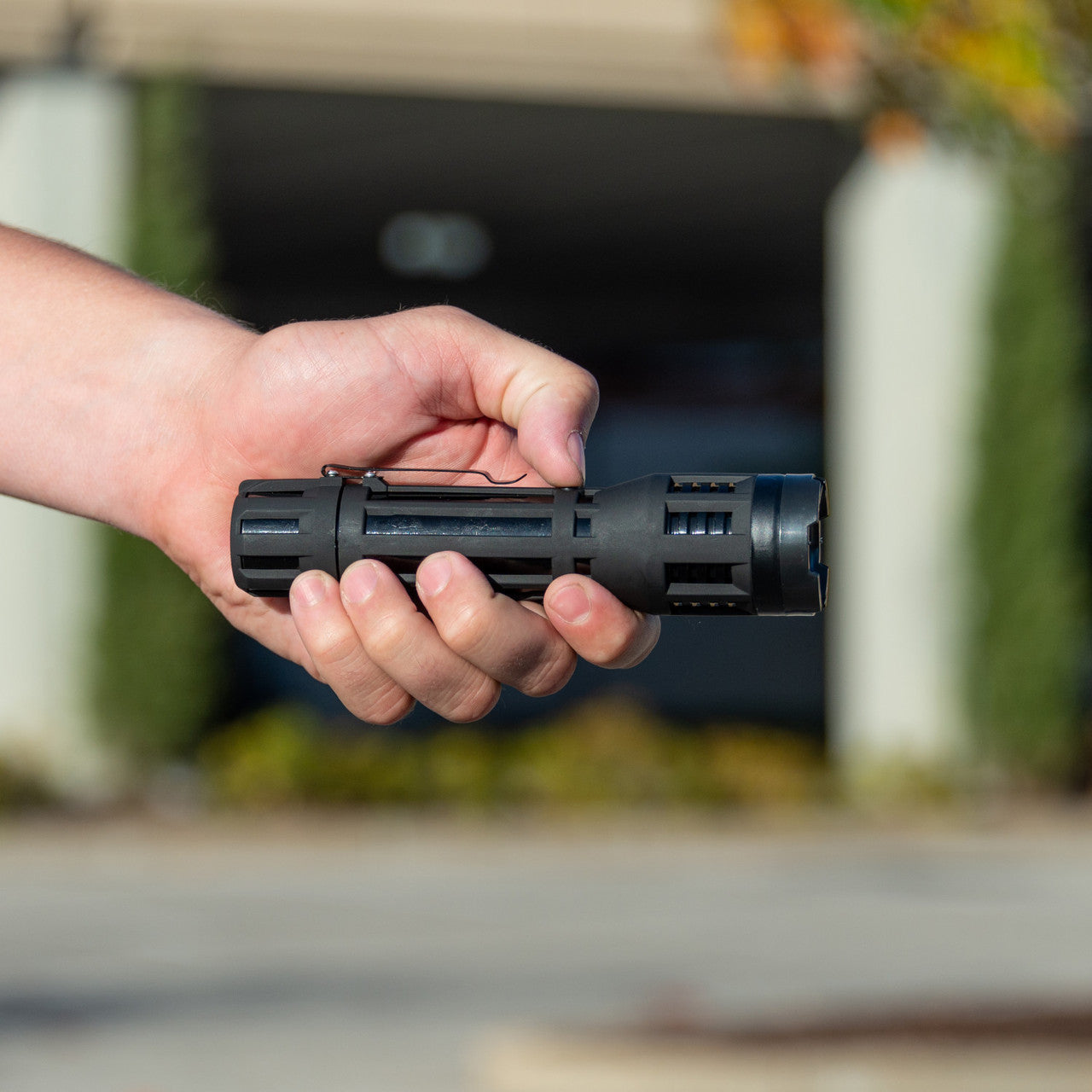 The SABRE Tactical 2-in-1 Stun Gun with LED Flashlight delivers a 1.820 µC charge and a 120 lumen beam for confident personal protection. Rugged aluminum housing, safety switch, rechargeable battery, and a belt holster make it reliable for EDC, security patrols, and duty use. Includes training links to boost skill and readiness. Available in black or green. MPN S-1000. Ships fast from WCUniforms.