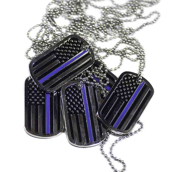 Placa de identificación con bandera o calavera de línea azul finaTBL-TBLAM-TBL-DOGTAG