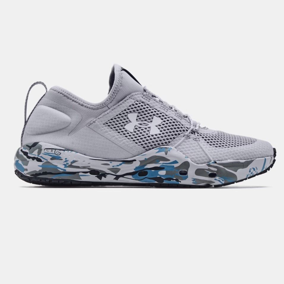 UA Micro G Kilchis Camo Fishing Shoes 3024616 are built for the water with slip-resistant outsoles and responsive Micro G® cushioning for all-day comfort. Highly breathable and quick-drying, with welded synthetic overlays for abrasion protection. Features a contoured midsole for rapid drainage and a non-marking rubber outsole for smooth, wet surface grip. Regular Style #: 3024616. Lightweight at 9 oz with standard tie laces. Imported.
