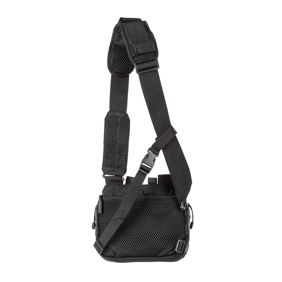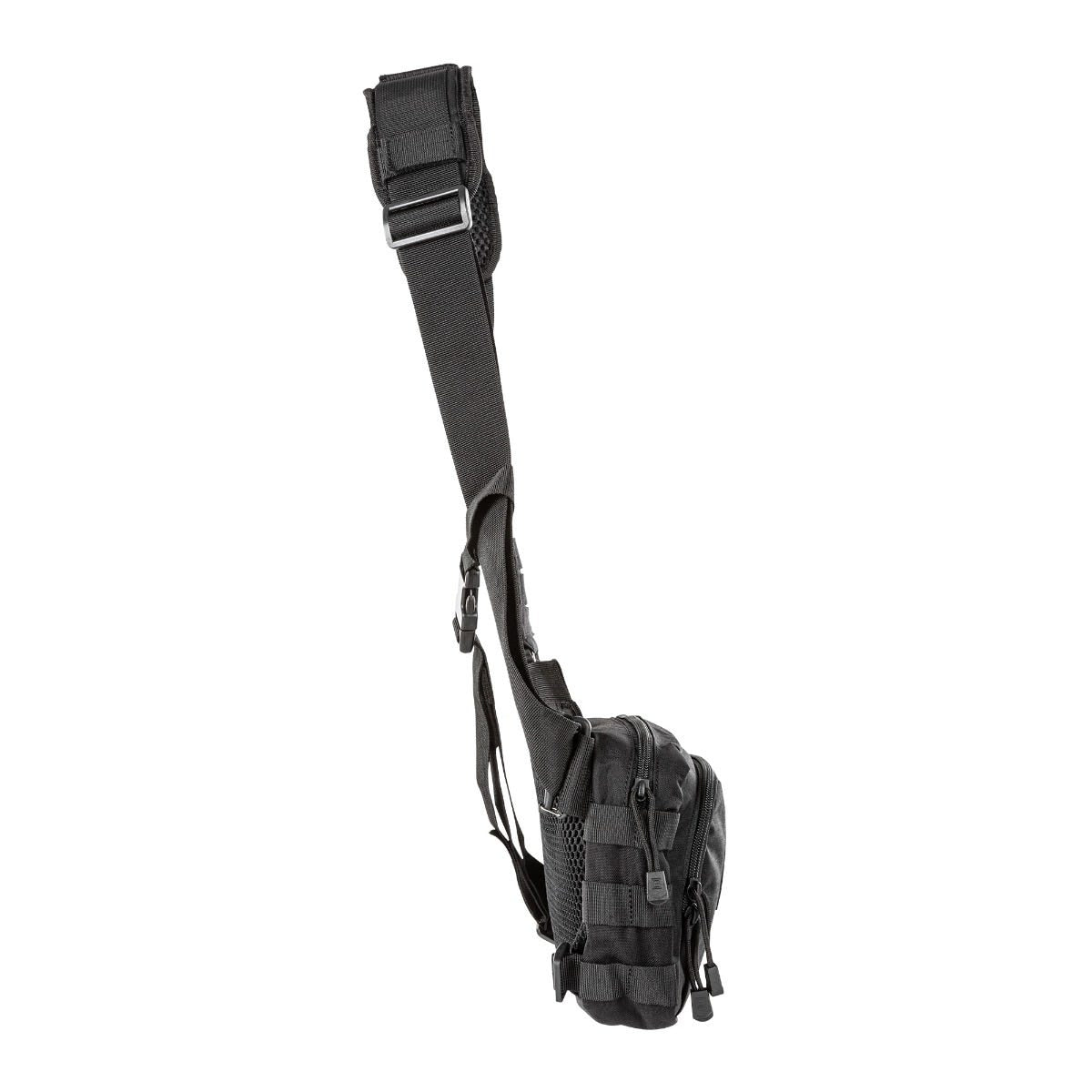 Ambidextrous strap fits most body types for cross-body or waist carry. MOLLE fields accept standard modular pouches and accessories.