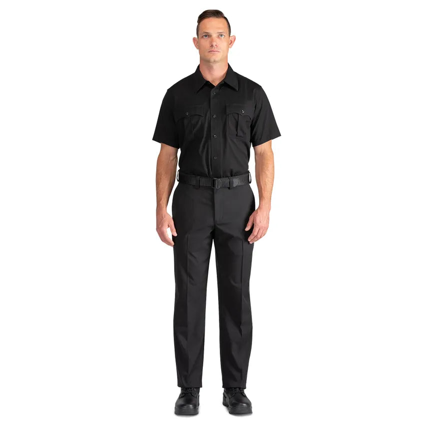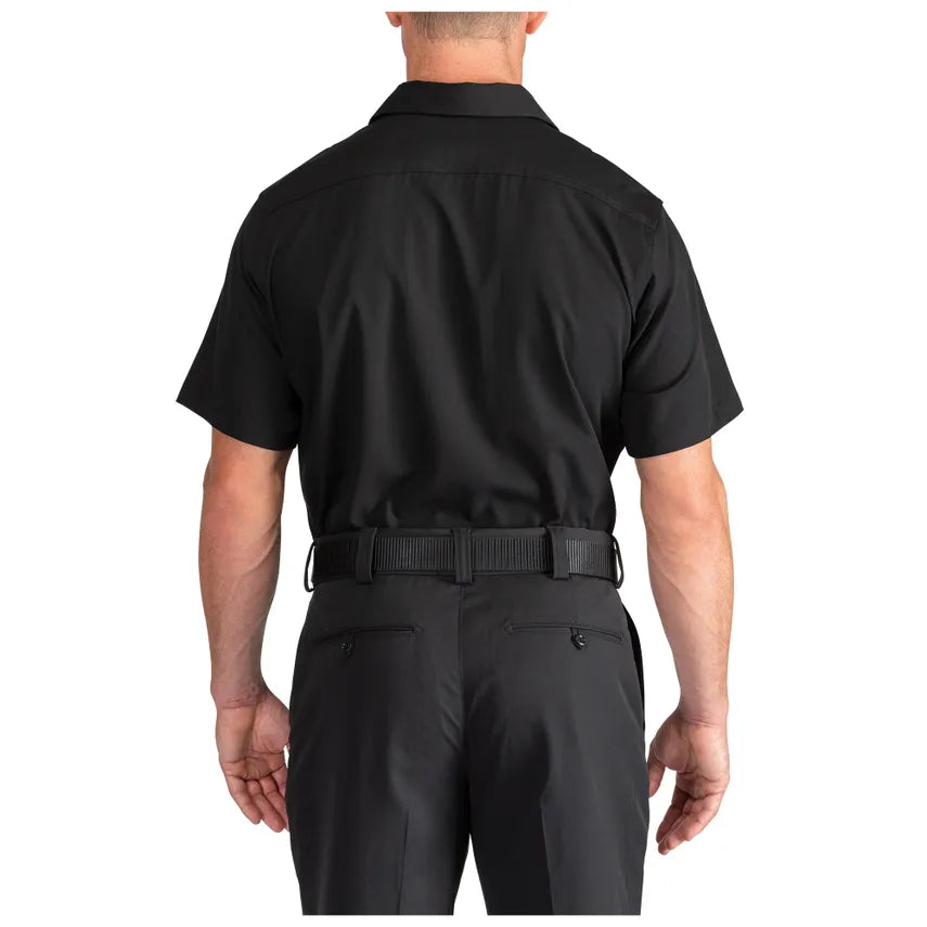 Made with 5.11's mechanical stretch Flex-Tac® 62% polyester / 38% merino wool twill fabric (5.1 oz.) and finished with Teflon® for stain and soil resistance. Men's and women's shirts feature traditional patch pockets with scalloped pocket flaps (with pen guides) and YKK® zippered center front closure. A kit with epaulets, badge tab, camera/radio loop, name badge support strip, and microphone loop are included in a separate bag.