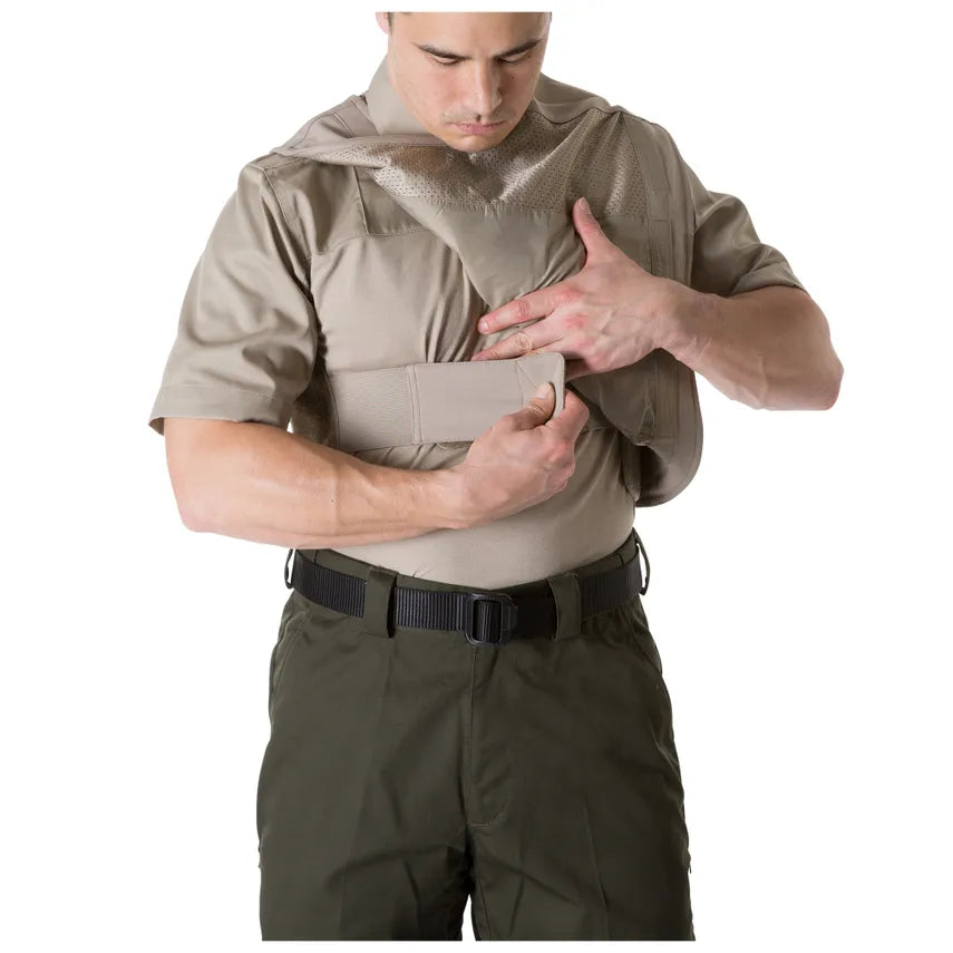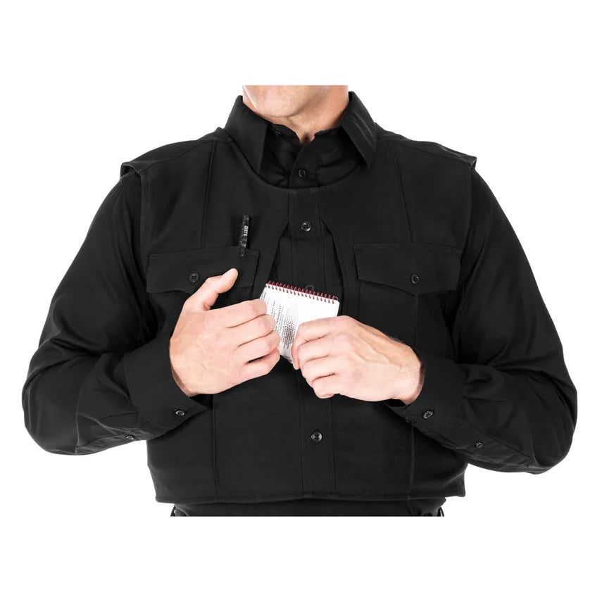 The Class-B Uniform Outer Carrier is engineered to withstand the harshest climates and protect operators in the most harrowing situations. Not to mention, it pretty much carries it all, and provides smart, quick access to essential tools and documents. Add a chest plate through the internal openings at the bottom for the ultimate protection on duty. This carrier also includes an embellishment kit with a badge tab, camera loop, and epaulets. Its breathable, lightweight construction with lets you move freely and comfortably, while an inside elastic cummerbund keeps your gear secure.