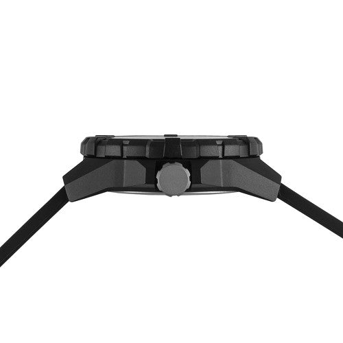 Yes. The shatterproof Armourglass crystal is engineered to handle around 6,000 Vickers hardness, compared to roughly 700 for many standard crystals. Combined with the carbon fiber reinforced polycarbonate case, it is built to survive drops, knocks, and field abuse that would destroy many other watches.