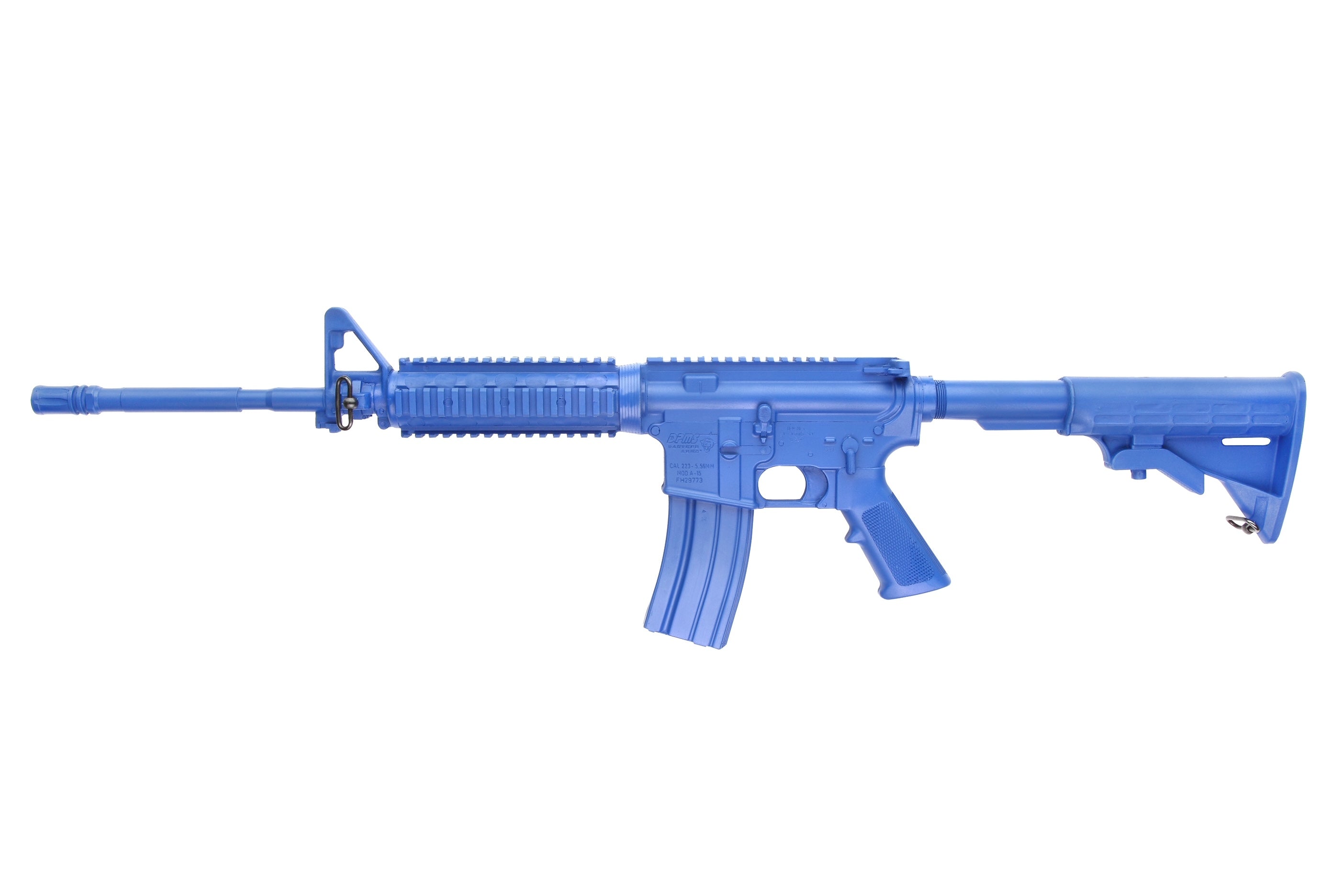 This training gun replicates the M4 Flat Top Open Stock Forward Rail model and is molded from a real firearm for exact size and dimensions. Made of solid impact-resistant polyurethane with a steel rod armature, it resists bending and flexing during demanding drills. The weighted version includes internal metal weights that replicate the balance and feel of a loaded weapon, while the non-weighted version offers lighter handling for instructional use. Because it mirrors the real platform, you can still use your weapon lights, sights, rubber grip sleeves, and other accessories.
