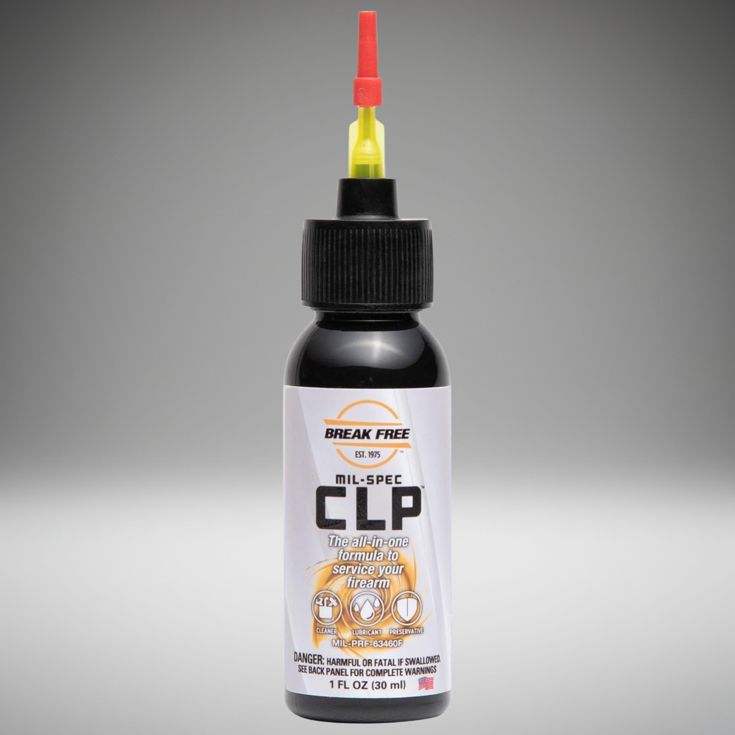 Break Free CLP® sets the standard for firearm maintenance. This product is trusted by military and law enforcement agencies across the globe. The 1 oz. bottle features a needle applicator for controlled, mess-free use. With its proven MIL-SPEC 63460F Type-A formula, Break Free CLP® delivers powerful cleaning, effective lubrication, and lasting protection for your firearms.