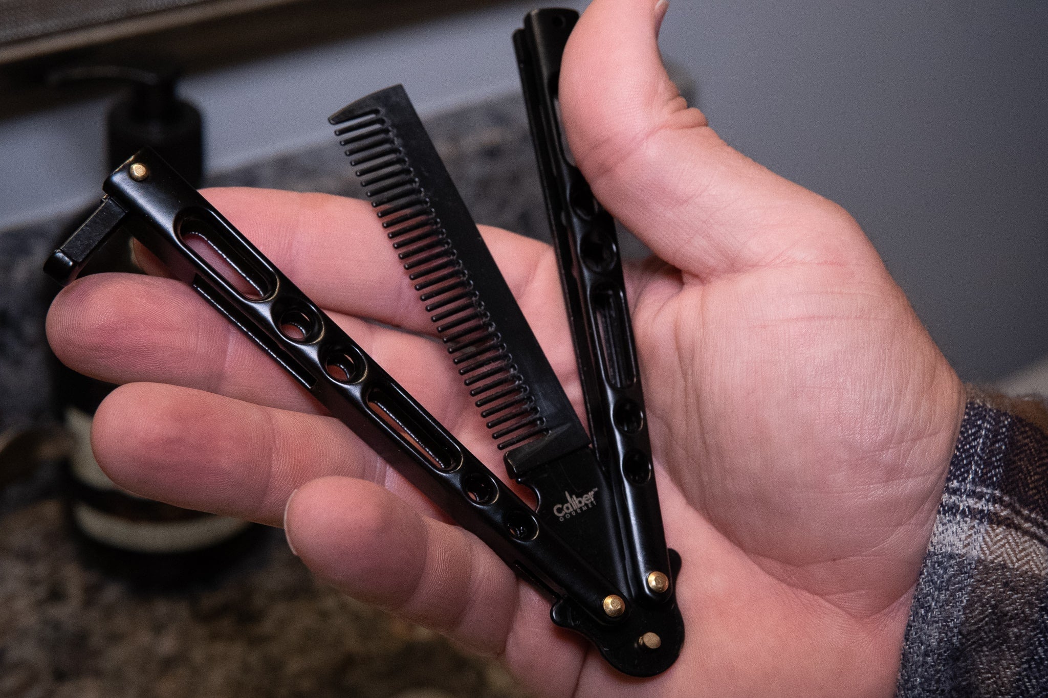 Get ready to impress with the Caliber Gourmet Butterfly Comb! Perfect for practicing your butterfly knife skills, this comb is also great for hair and beard grooming on the go. Take it along on outdoor adventures and show off your flipping skills to friends. Safe and easy to use, this comb is ideal for training. Package includes 1 razor comb with a convenient clasp.