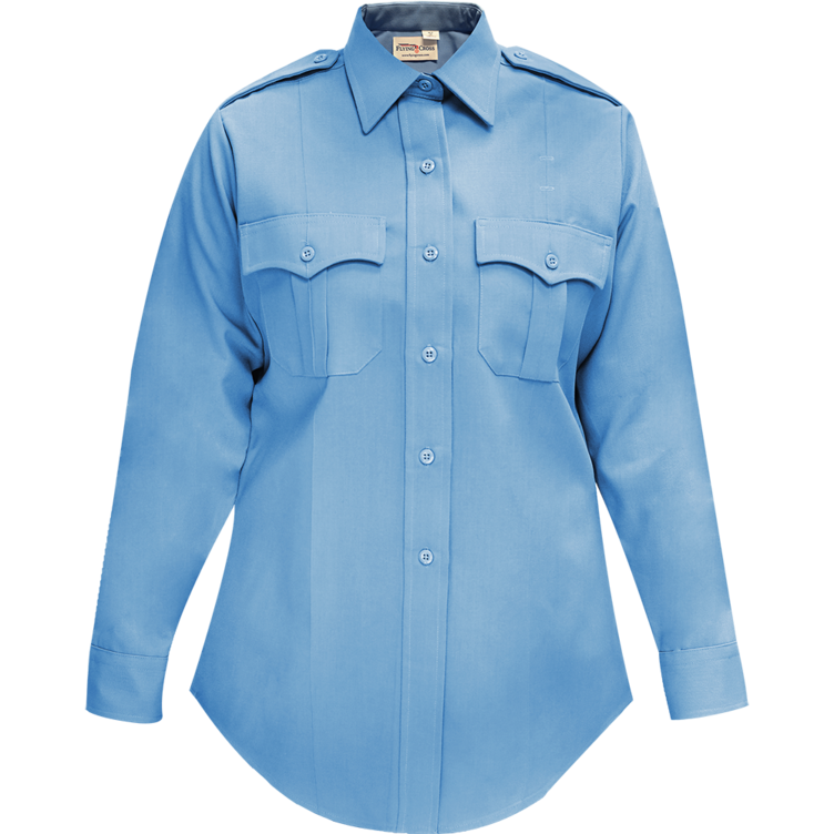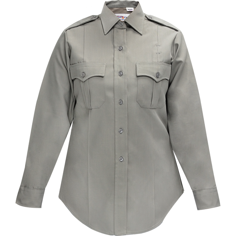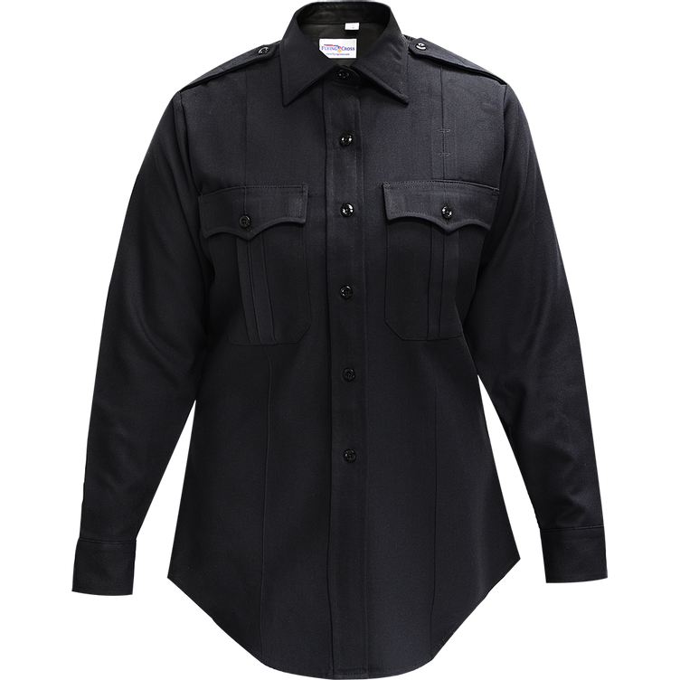 The Deluxe Tropical line has a fabric composition of 65% polyester which provides a crisp durable uniform shape and 35% rayon that has the feeling of comfortable silk. This durable long sleeve has symmetrical shoulder straps and a button placket front. These shirts are popular among police agencies for all the extras they offer. Including Supercrease creases on the front and back and ready to wire up with cameras and communication devices.