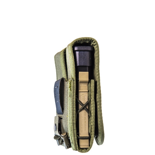 Holds two mags with (2) snaps to cover standard 19 or 21 round mags