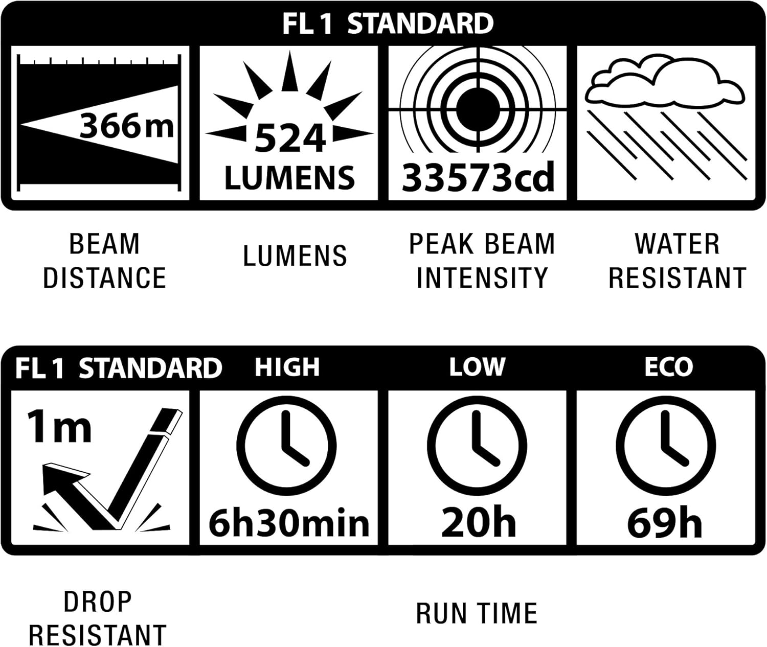 • Full Power Mode: Delivers a maximum of 524 lumens, providing a bright and focused beam for demanding tasks.