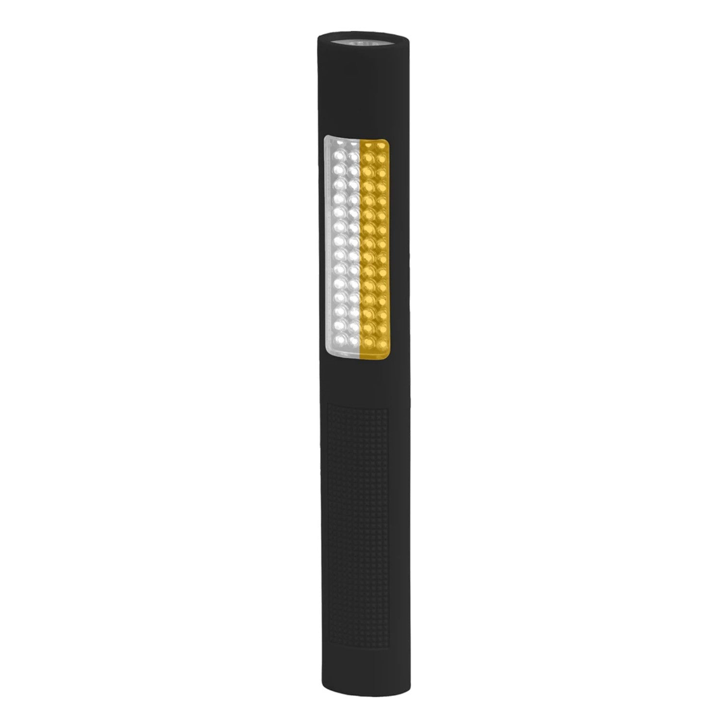With all-LED construction, this device combines a tight-beam 150-lumen long-throw flashlight and a 120-lumen wide-angle floodlight with white and amber LEDs. Its dual-button design keeps things simple: the top button controls the flashlight in momentary or constant-on mode, while the bottom button activates the white floodlight or flashing amber safety lights. You can also run the dual-light mode for maximum visibility. Whether directing traffic or marking hazards, the included red safety cone enhances your presence and control in the field.
