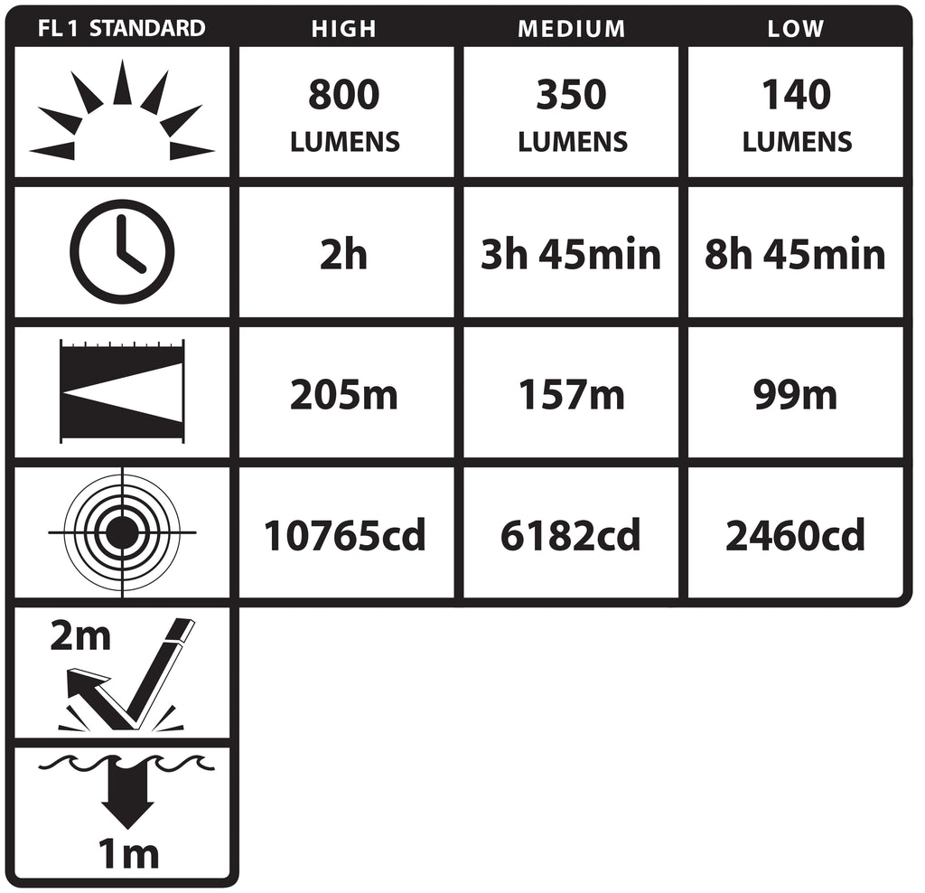 Powered by a rechargeable Lithium-ion battery, the TAC-560XL offers versatile power options to suit your needs. It can also operate with two CR123 batteries (not included) using the included CR123 Battery Carrier, providing flexibility in power sources. The high-efficiency deep parabolic reflector works in harmony with an 800-lumen LED to produce a focused beam that reaches an impressive 205 meters (over 670 feet). With user-selectable brightness settings—high (800 lumens), medium (350 lumens), and low (140 lumens)—as well as a disorienting strobe function, this flashlight adapts seamlessly to any situation. Enjoy extended runtime across various modes, with up to 8.75 hours on low and a swift 4-hour recharge time, ensuring you're always prepared when it matters most.