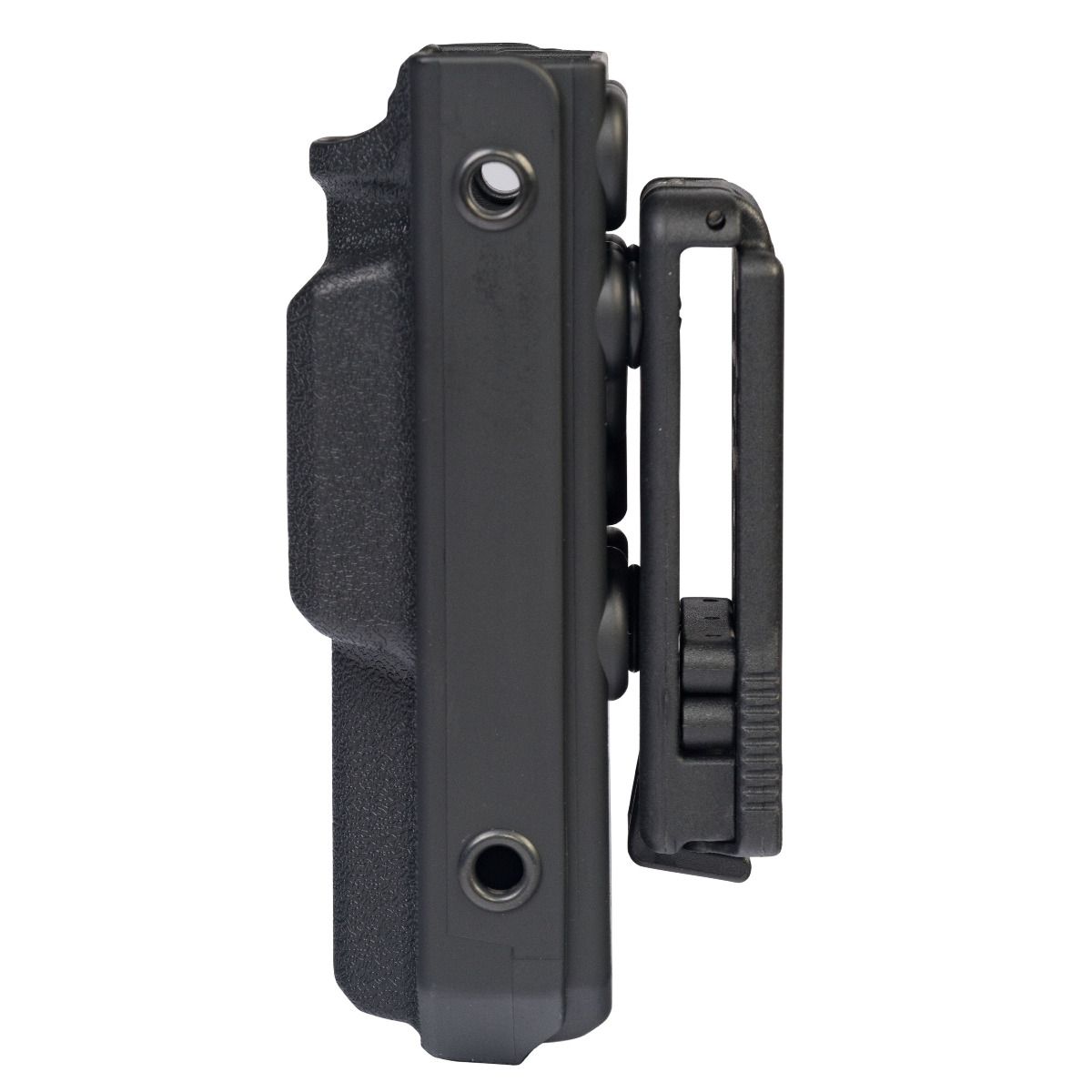 Drop leg compatibility: Attaches to a Safariland Drop Leg Shroud using existing holes with a two-screw center mount.