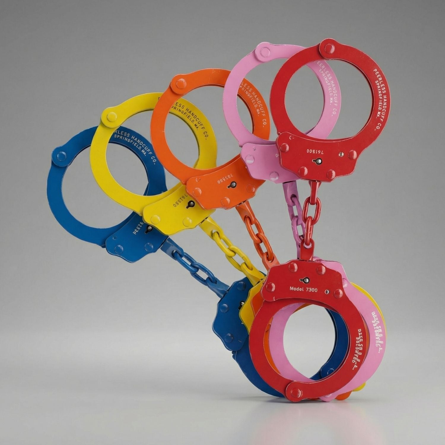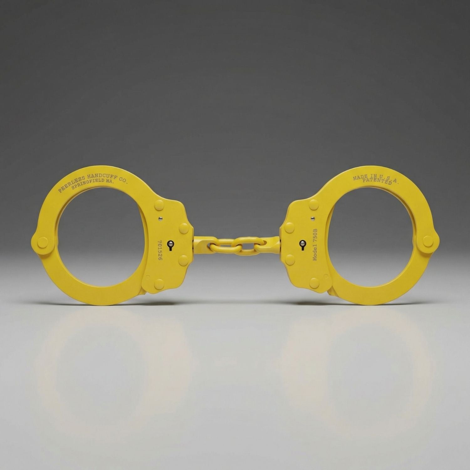 Answer 1: The Peerless Model 750 chain handcuffs are constructed from carbon steel and feature an Electrolytic Polyurethane Plating finish.