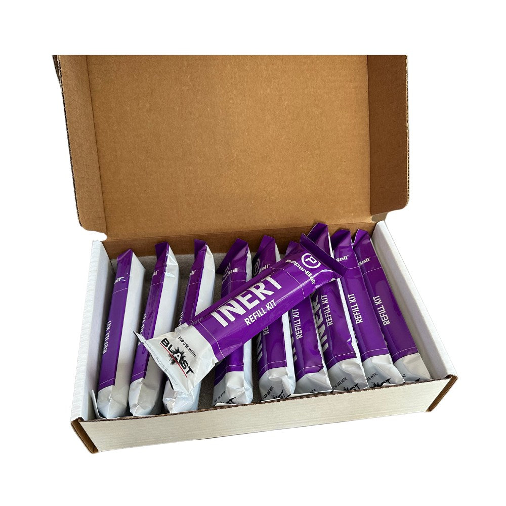 10 INERT refills for the PepperBall Blast. 10 loaded barrels and air cartridges for the PepperBall BLAST. Assembly required.