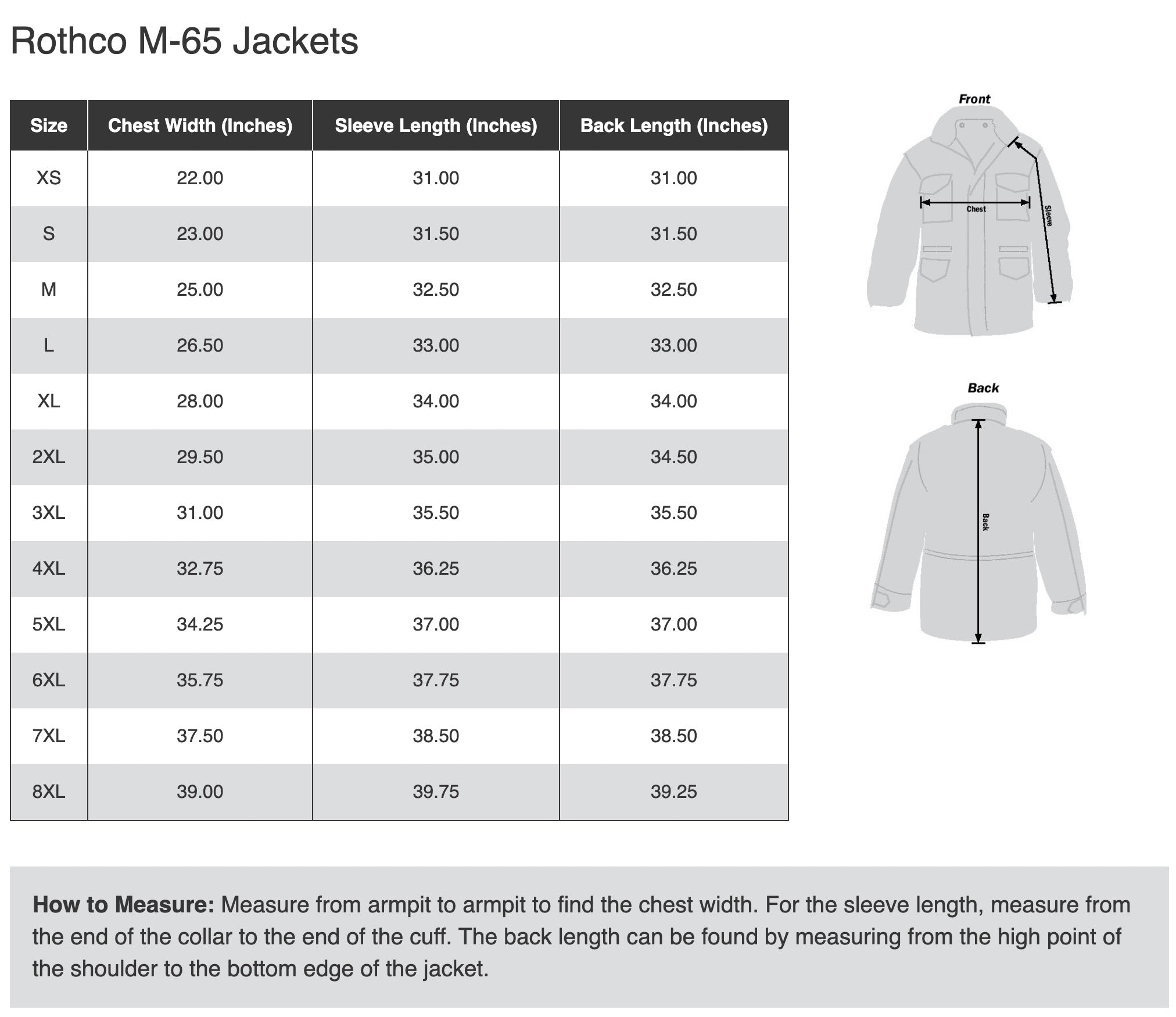 Rothco M-65 jackets typically have a roomier cut so you can layer underneath. If you plan to wear thick sweatshirts or body armor, your usual size often works well. If you prefer a closer fit with light layers, some users choose to size down.