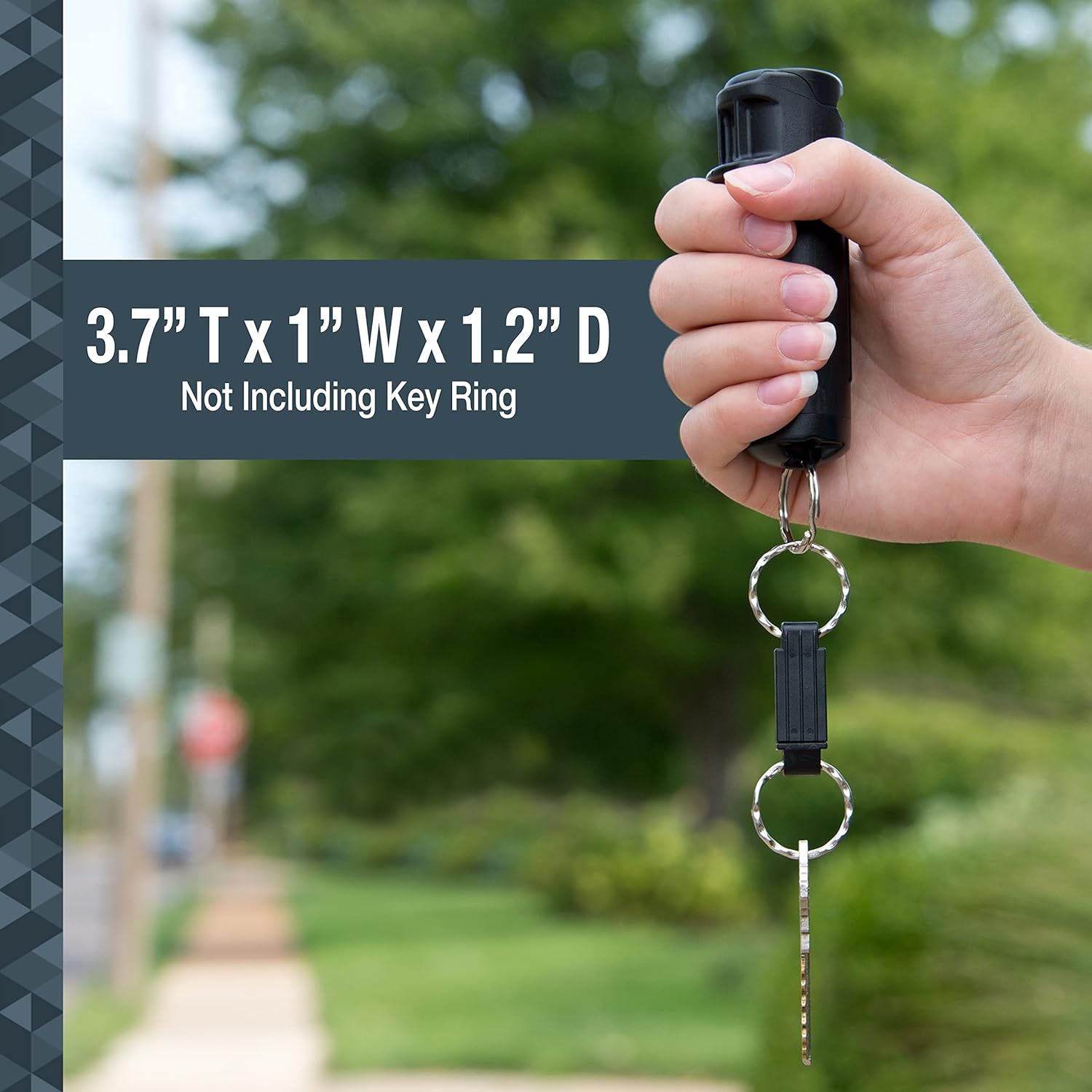 Made in the USA this personal defense tool offers 25 bursts and 3X longer spray time compared to many traditional pepper sprays. Clip it to keys or a lanyard for everyday carry. The quick-release design lets you separate the whistle in a snap, so you can call for help even in areas that restrict pepper sprays.