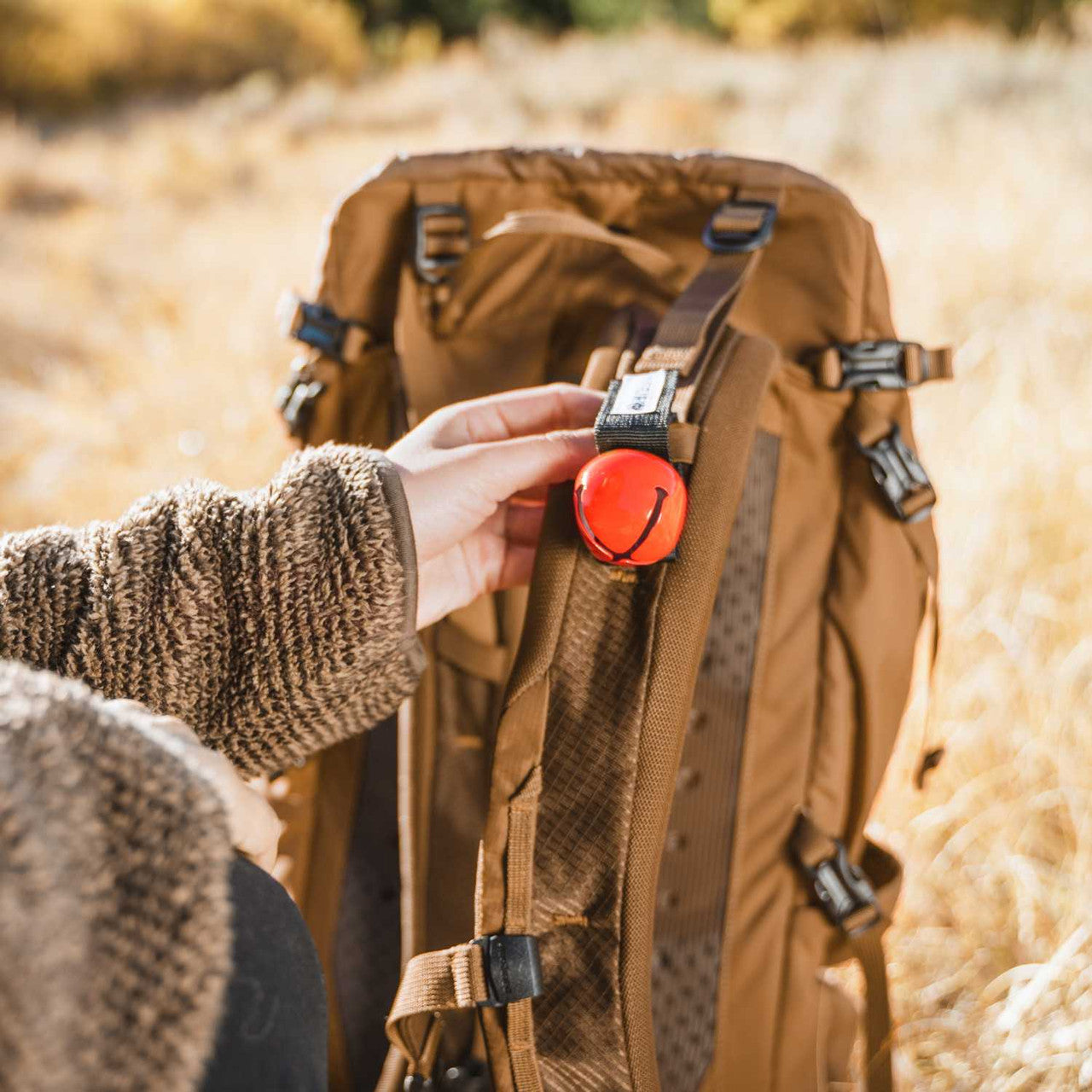 Attach it to a boot, pack strap, or hip belt. Movement creates a steady jingle that travels ahead on the trail.