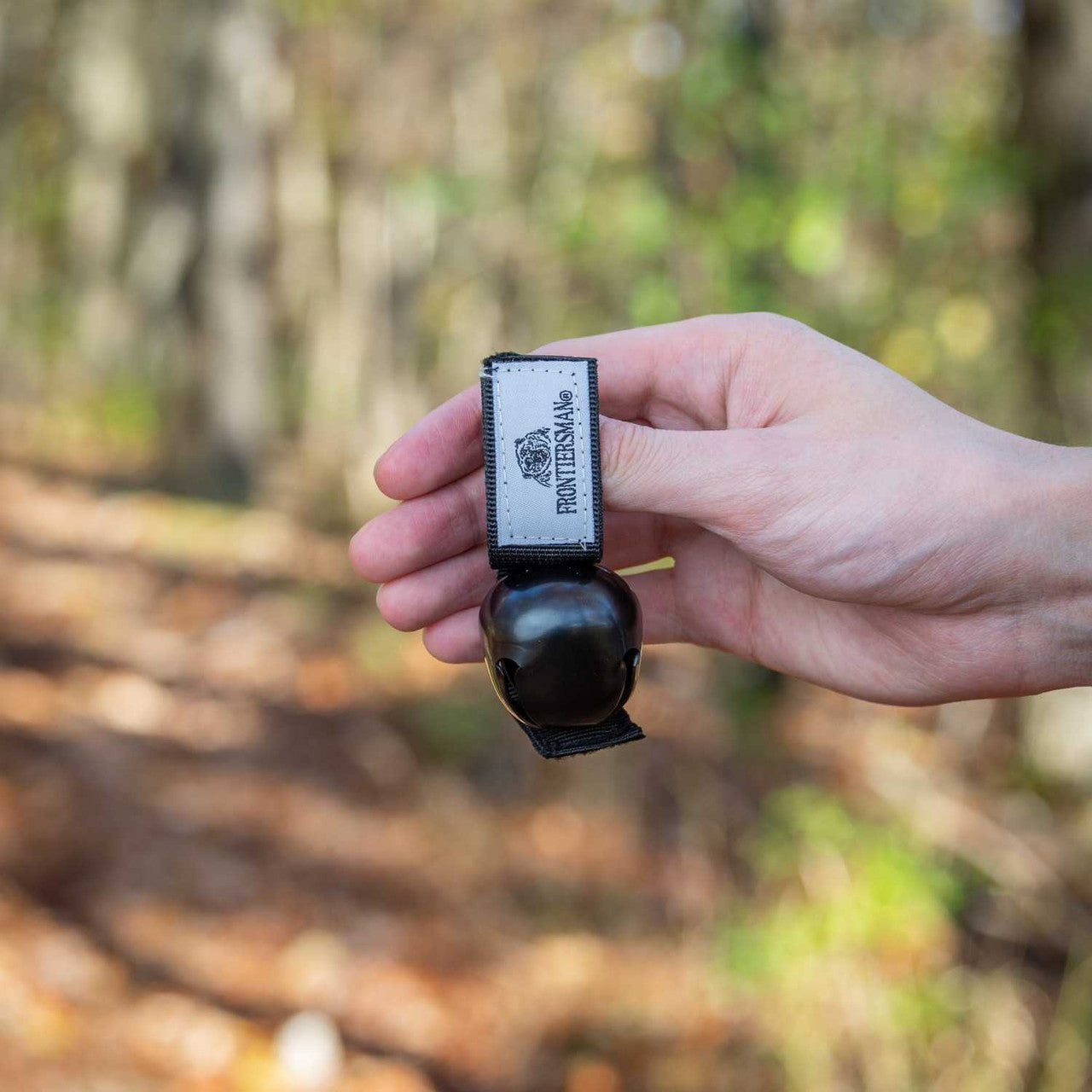 • One SABRE Frontiersman Bear Bell BB-01 with hook and loop strap and built-in magnetic silencer