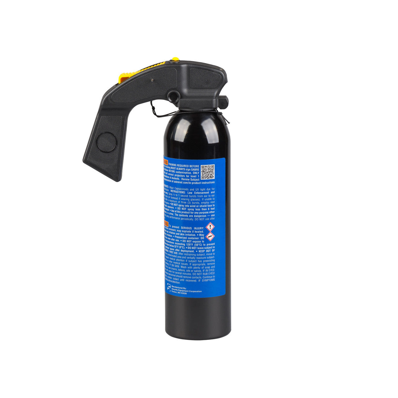 Many officers need a spray that will not ignite when used with electronic discharge weapons. The Sabre MK-9 H2O series uses distilled water as its base, which means it will not catch fire and is safe for use with tasers. The formula is water-soluble, making cleanup and decontamination quicker and easier after incidents. The canister features a pistol-style grip, safety tab, pin, and lanyard to help prevent accidental discharge and provide secure handling. Each unit is tested for eye, skin, and inhalation safety and for PSI accuracy before leaving the factory.