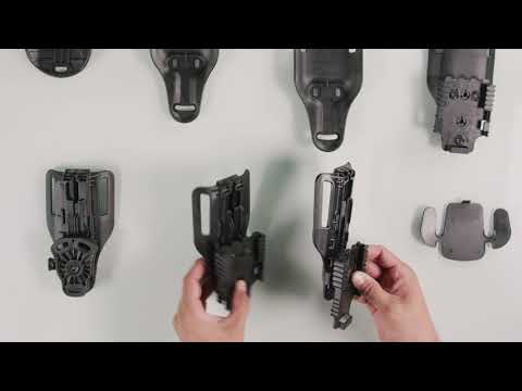 The QLS Universal Belt Loop (QUBL) allows the user to easily raise and lower their holster from Low-ride, Mid-ride or High-ride holster height positions without any tools. Based on the VUBL design, the QUBL sits close to the body and is extremely adaptable, enabling quick attachment and detachment of gear from the QLS mounting platform.