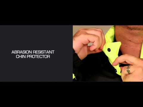 Low profile utility shoulder straps Covered storm front with two way nylon zipper with abrasion resistant chin protector Critically seam taped for wing and water proof protection