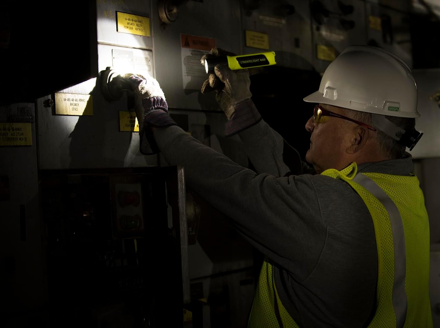 This flashlight is built with a durable, non-conductive polymer body that helps reduce electrical risk in sensitive areas. The ergonomically shaped handle supports a secure, comfortable grip during long shifts.