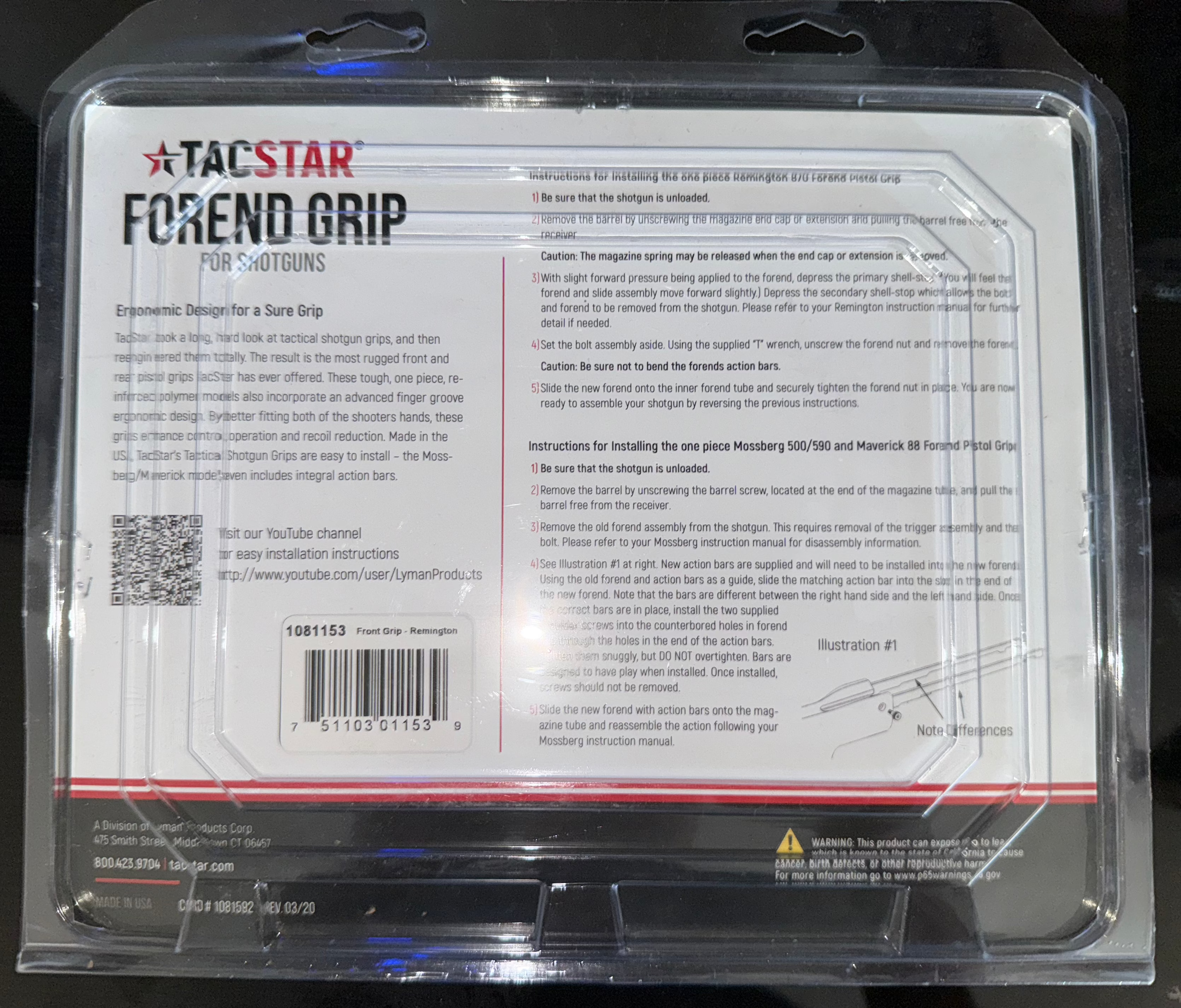 TacStar makes it easy to select the correct grip for your shotgun model. Model 1081151 is compatible with Mossberg 500, Mossberg 590, and Maverick 88 shotguns. Model LY1081153 is designed specifically for the Remington 870. Both are for 12-gauge only and proudly made in the U.S.A.