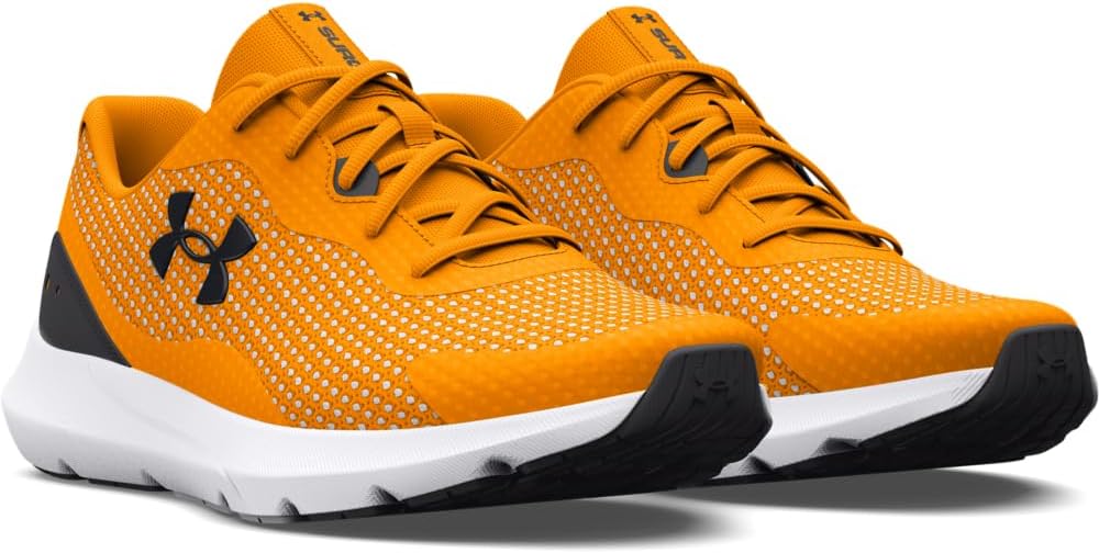The Under Armour UA Surge 3 Running Shoes, style 302488, give you the soft, cushioned ride you want without slowing you down. A lightweight mesh upper, visible in every colorway from clean White to bold Formula Orange and After Burn red, helps your feet stay cooler on runs, range days, and long duty shifts. The regular-width fit works well for most runners and active professionals who spend hours on hard surfaces.