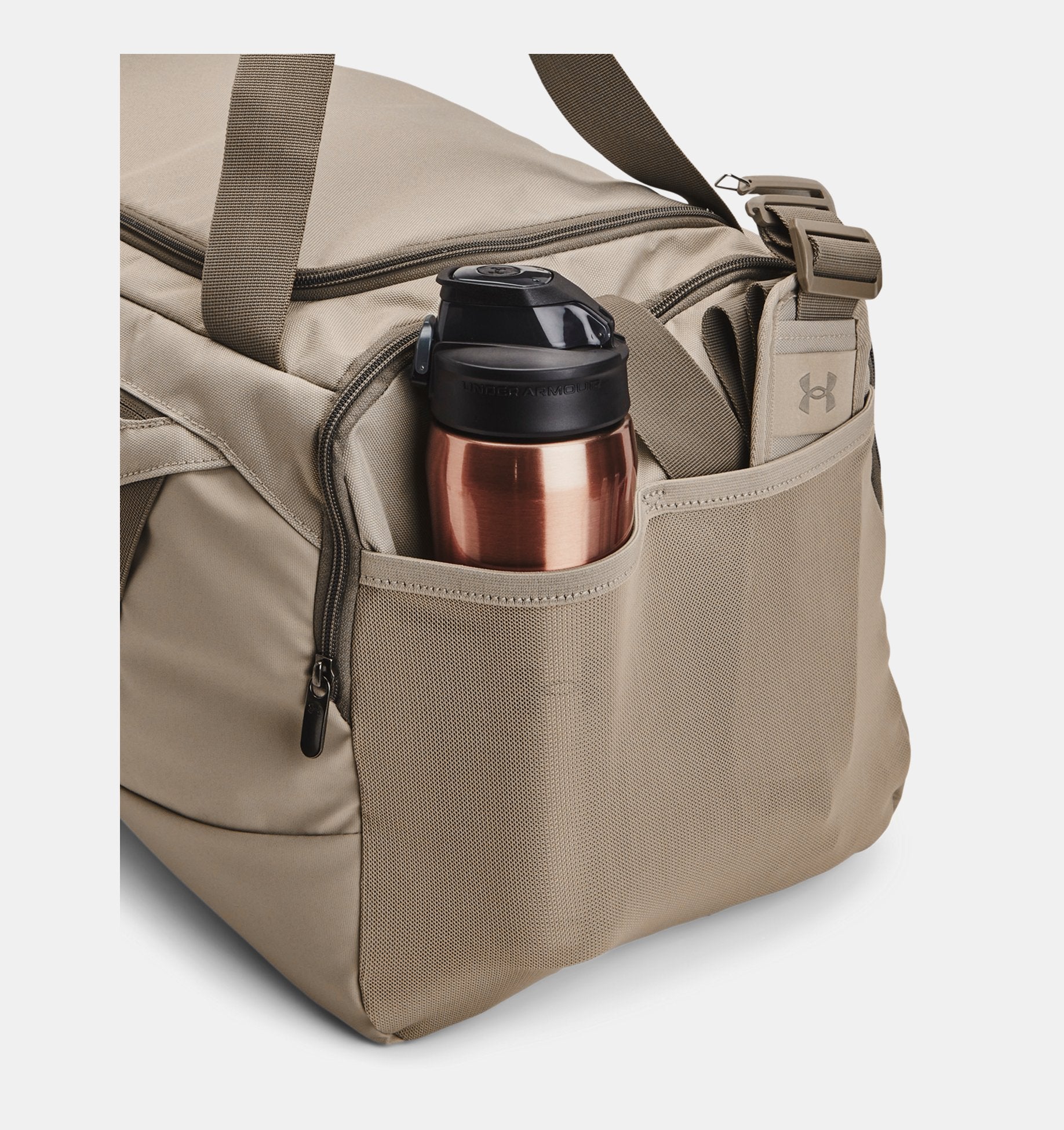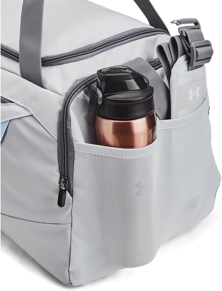 The removable, padded HeatGear® shoulder strap can be stashed inside when not in use, and the padded top grab handle gives you a comfortable grip. Organization is easy with a large vented pocket for shoes or laundry, internal slip pockets, and a large front zippered pocket with molle webbing for extra attachments. Dual side slip pockets hold your water bottles, so you stay hydrated on the go.