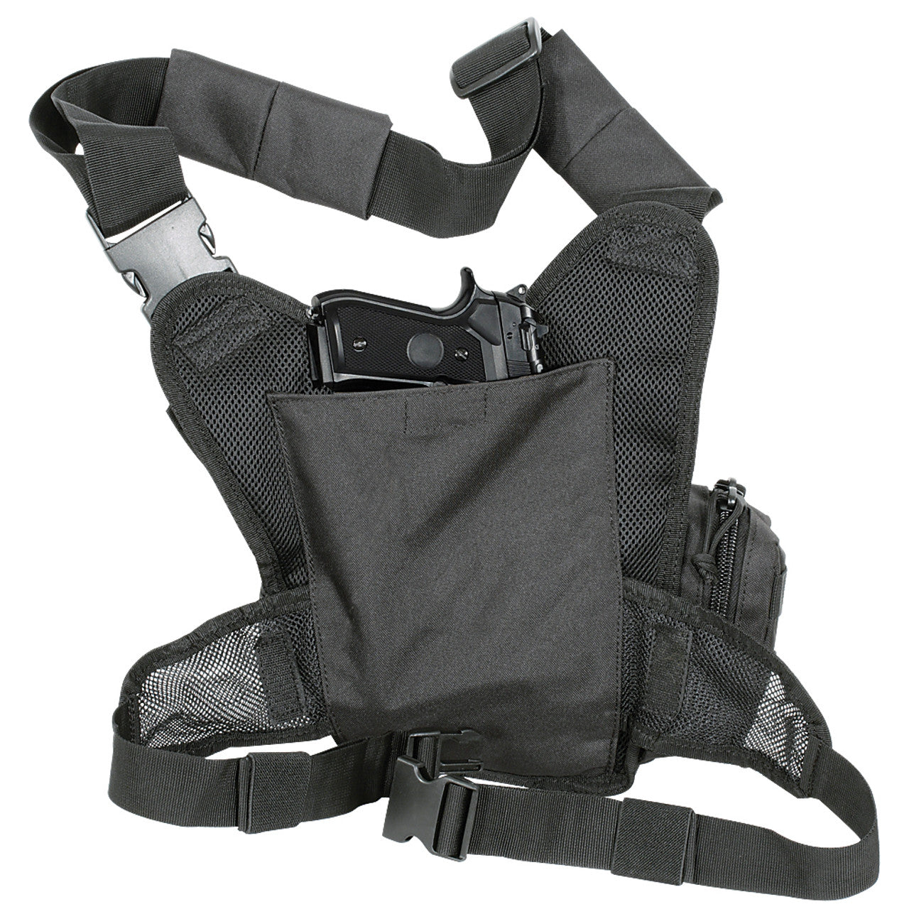 Efficiency meets organization with the Voodoo Tactical Ergo Pack, meticulously designed to accommodate all your essential gear with ease. Central to its functionality is an ambidextrous holster that securely holds your firearm, complemented by an attached elastic magazine pouch for quick and convenient access to ammunition. The rear of the pack boasts a padded pocket capable of holding most clip sizes, ensuring your gear is both protected and easily accessible. Two zippered side pouches equipped with universal PALS webbing offer versatile attachment points for additional pouches, allowing you to customize your loadout based on your specific needs. The front flap unveils a comprehensive storage system, including an open pocket with a hook-and-loop closure for IDs, a zippered compartment for extra pistol magazines, and a main central compartment secured with a cord-lock drawstring to protect your belongings from the elements. With thoughtfully designed pockets for cell phones and pens, staying organized has never been easier.